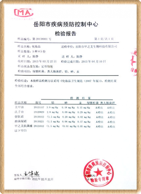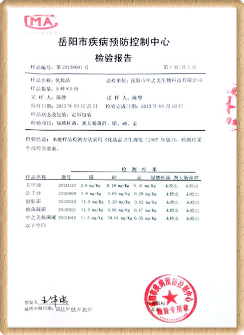 甲之美公司是集“研發(fā)、生產、營銷、培訓”為一體的科技型企業(yè)。公司擁有自主知識產權:2005年3月,“一種治療灰指甲、手足癬的藥物及其制備方法”獲得國家發(fā)明專利,專利號:ZL03118186.4(逾期),同年6月獲得湖南省衛(wèi)生廳生產、銷售批準文號,2007年被列入湖南省科技廳科技扶持項目。公司自主研發(fā)的皮膚抗菌系列產品,誠招各省市縣合作、代理商。